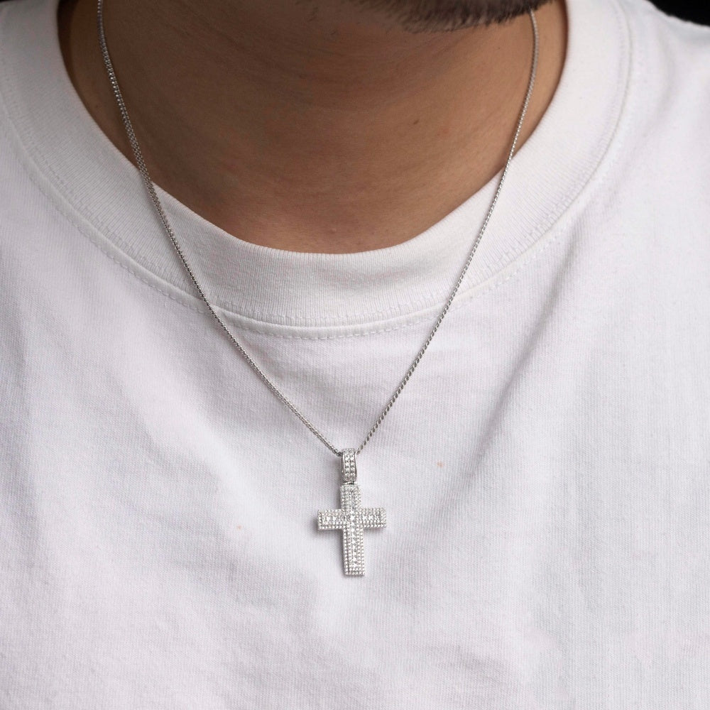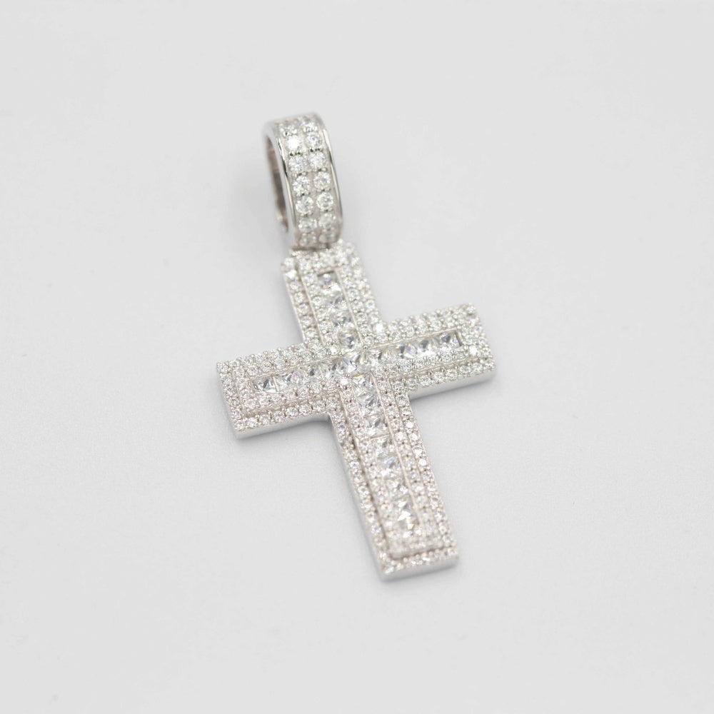 Princess Square Mosaic Cross Pendant S925 Silver Plated Necklace